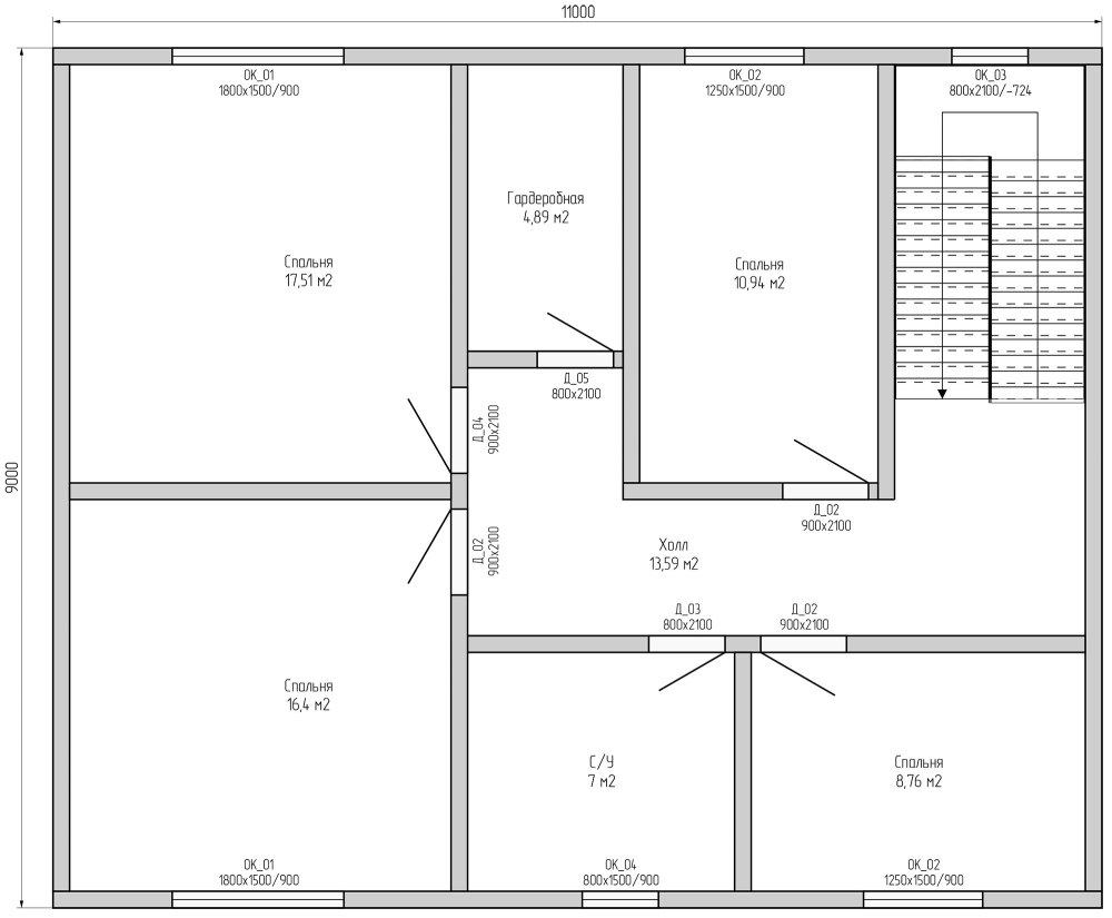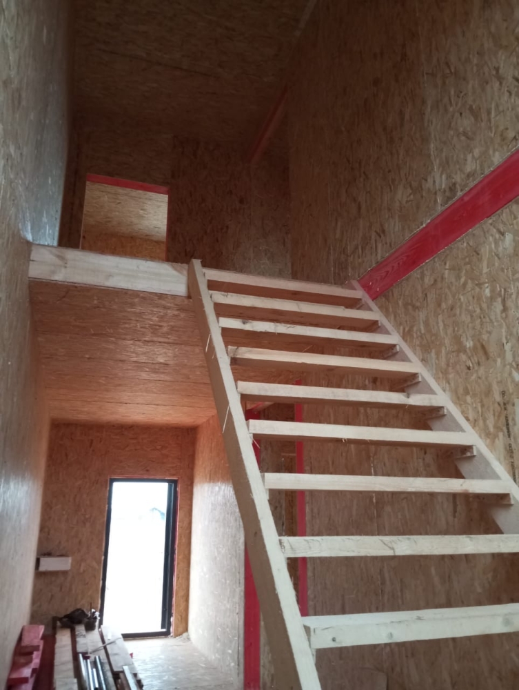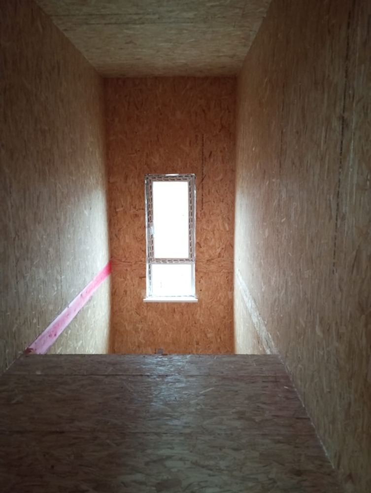 - Внутренние стены 1 и 2 этажей дома — СИП панели, толщина стен 124 мм, высота 2 800 мм.
