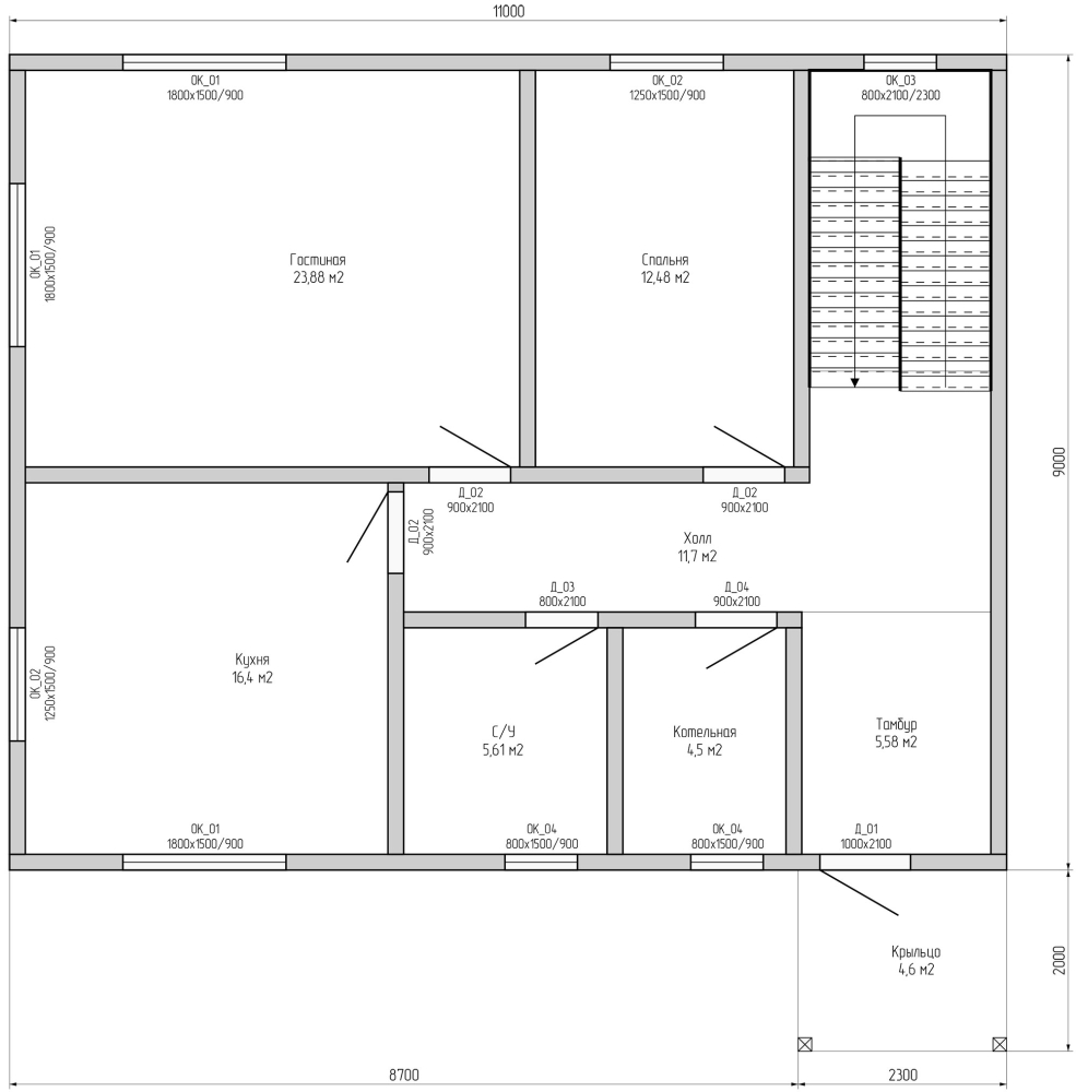 - В данном проекте для фундамента используются винтовые сваи, диаметр 108 мм, длина 2 500 мм.