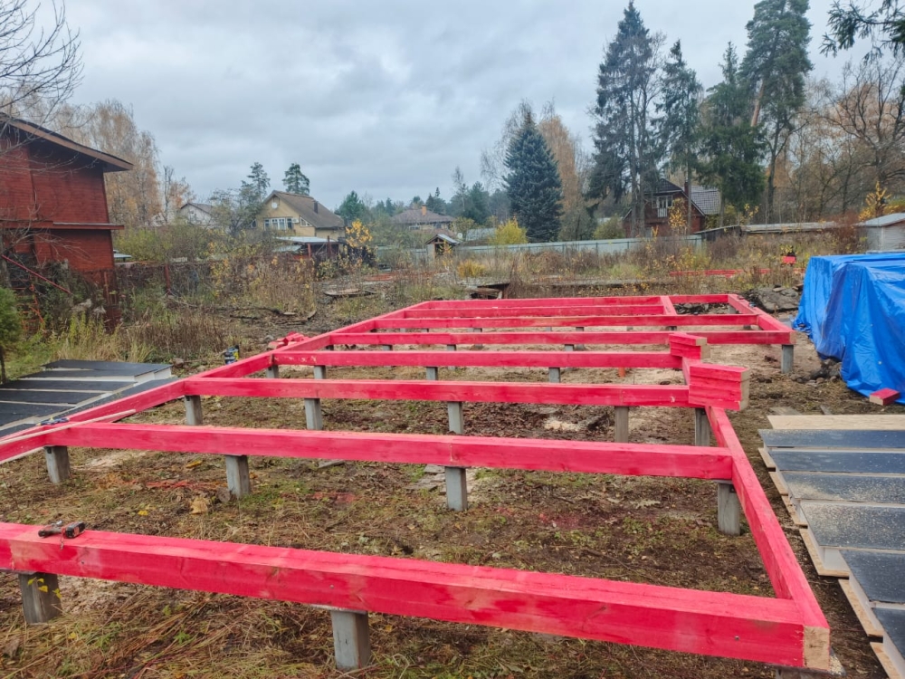 - Обвязка фундамента размером 200х200 мм, сдвоенный брус 200х100 мм.