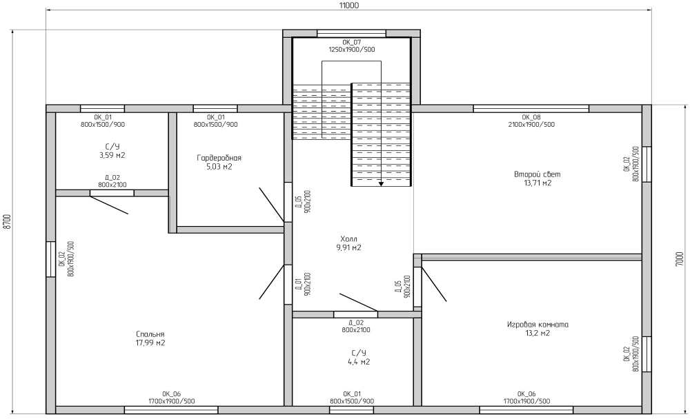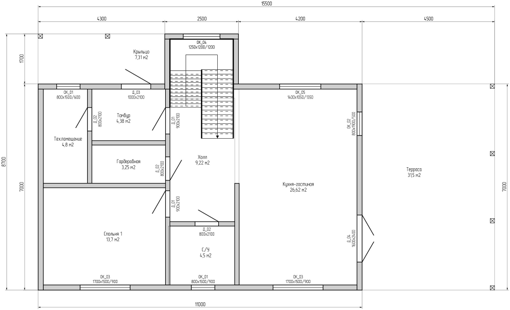 - Размеры дома по тепловому контуру - 7х11 м + терраса 31 м²