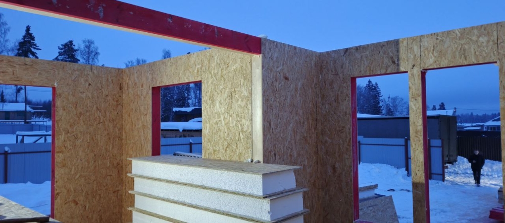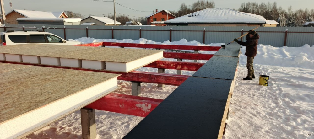 - Монтаж нулевого перекрытия - СИП панели, толщина 224х625 мм, усиленные.