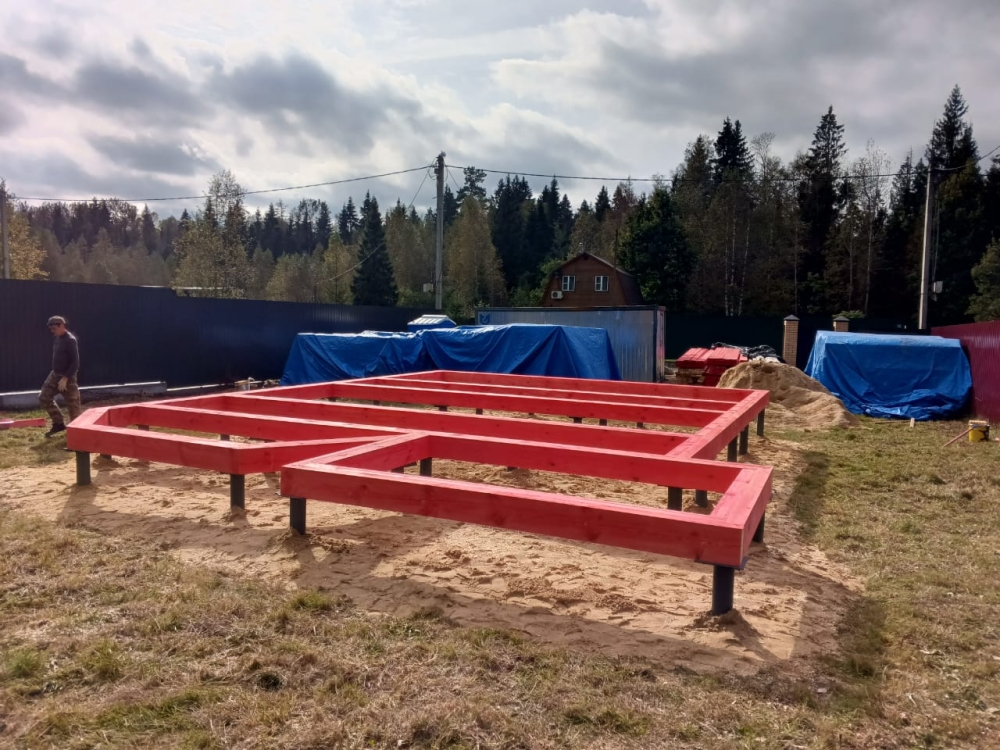 - Обвязка фундамента размером 200х200 мм, сдвоенный брус 200х100 мм.