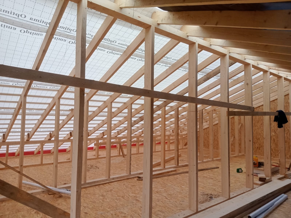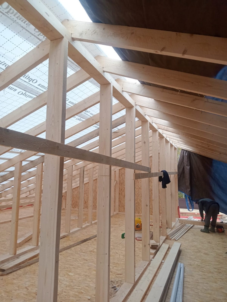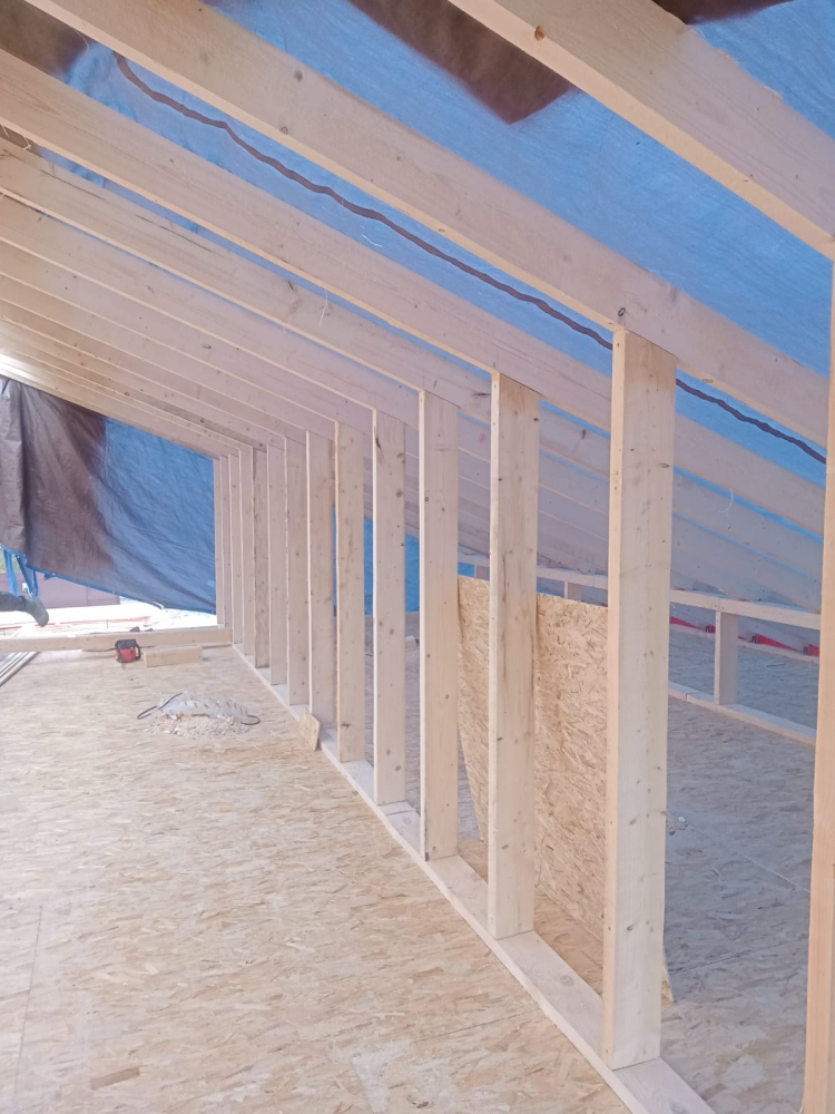- Внутрение перегородки каркас из пиломатериала 145х45 мм.