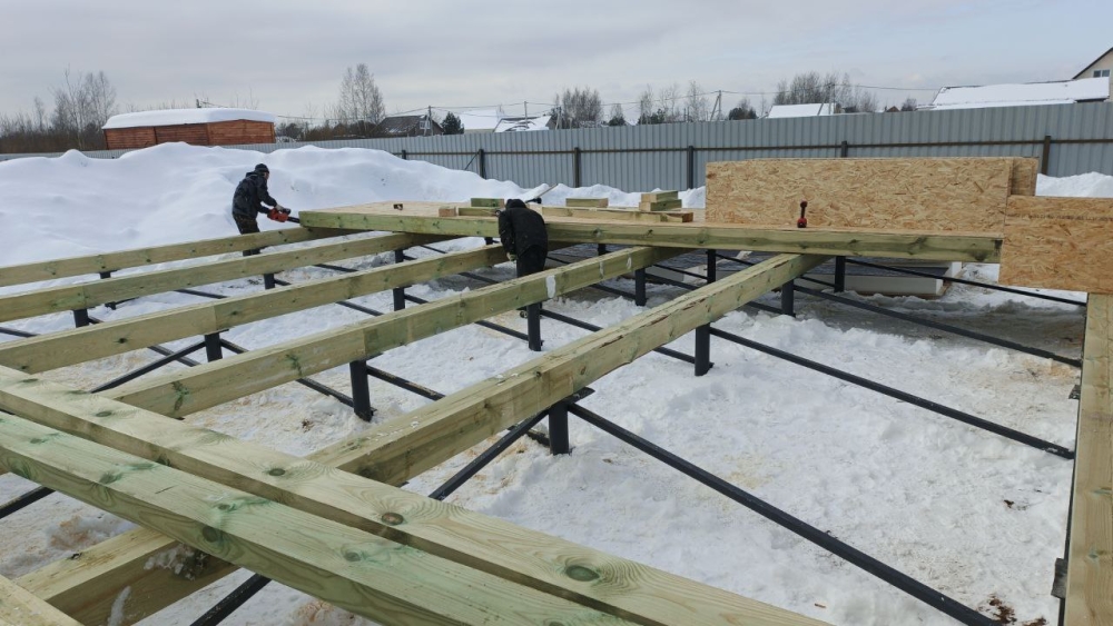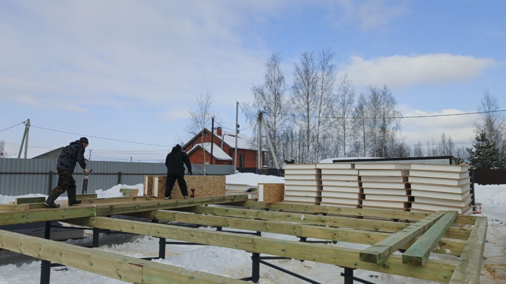 - Монтаж нулевого перекрытия - СИП панели, толщина 224х625 мм, усиленные.
