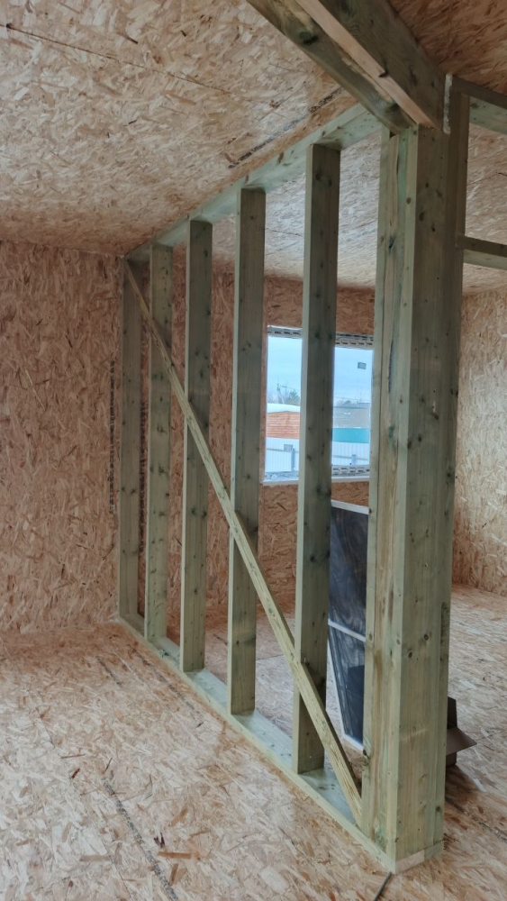 - Внутренние стены - каркас из пиломатериала.