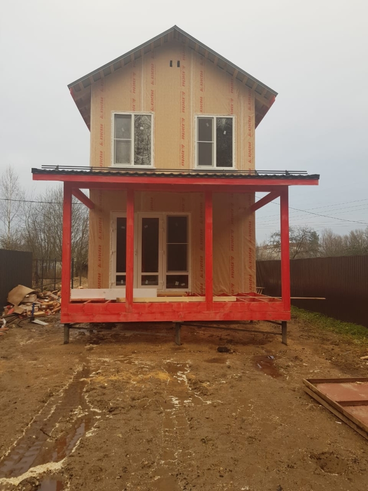 • Возведение стен первого, второго этажа дома высотой 2800 мм. Наружные и внутренние панели СИП 174x1250x2800 мм.