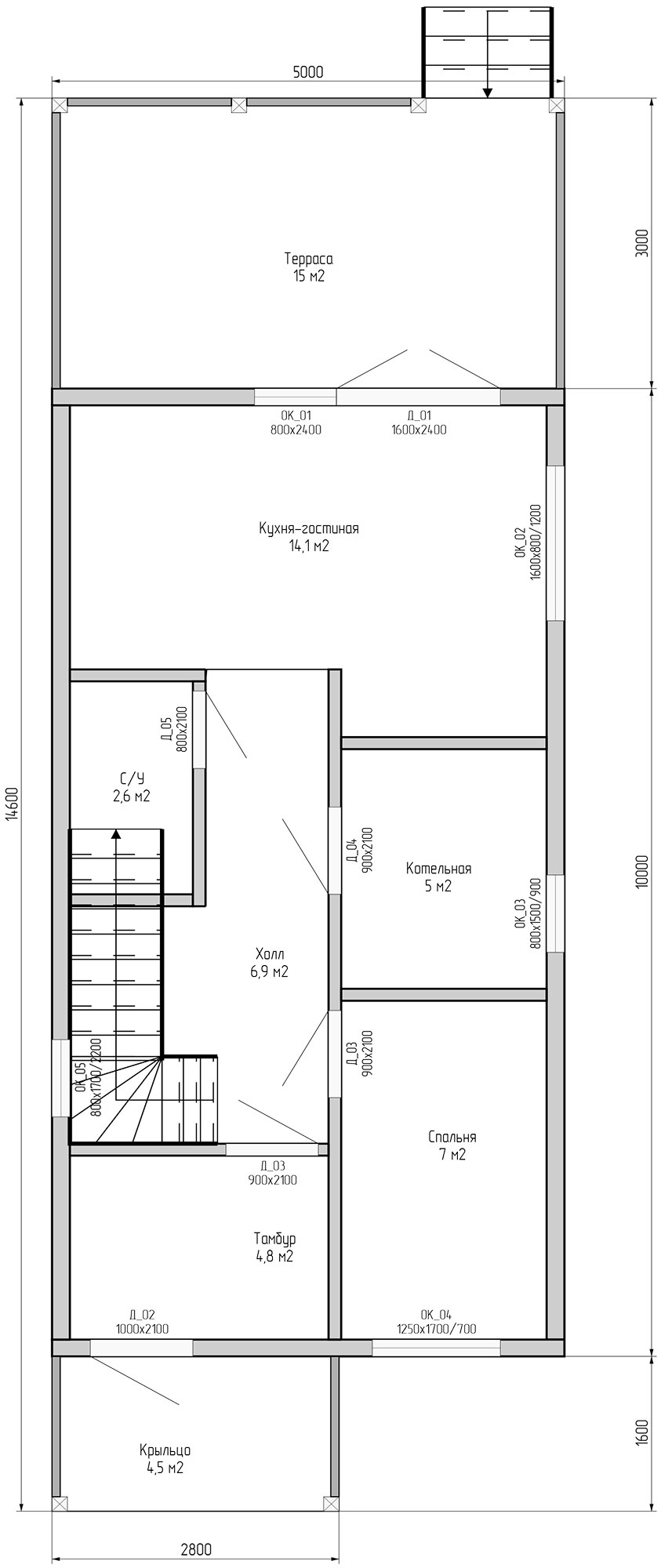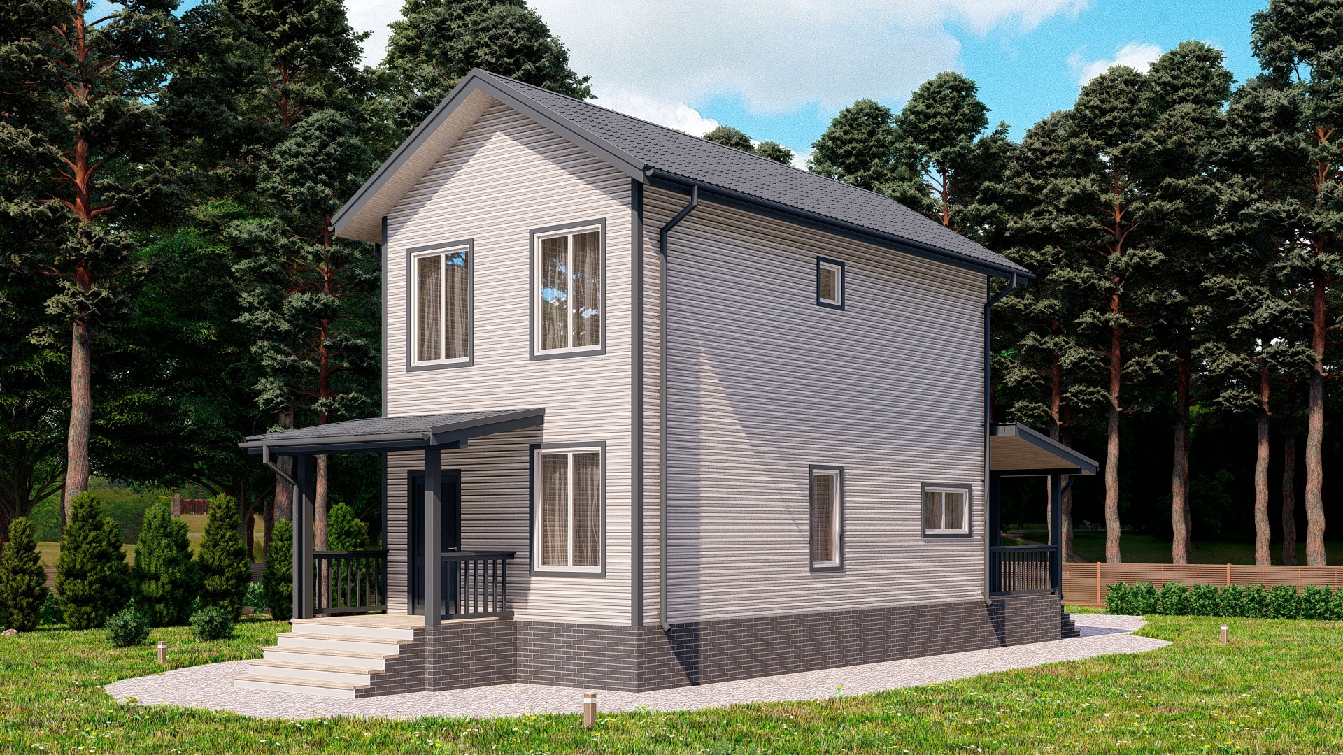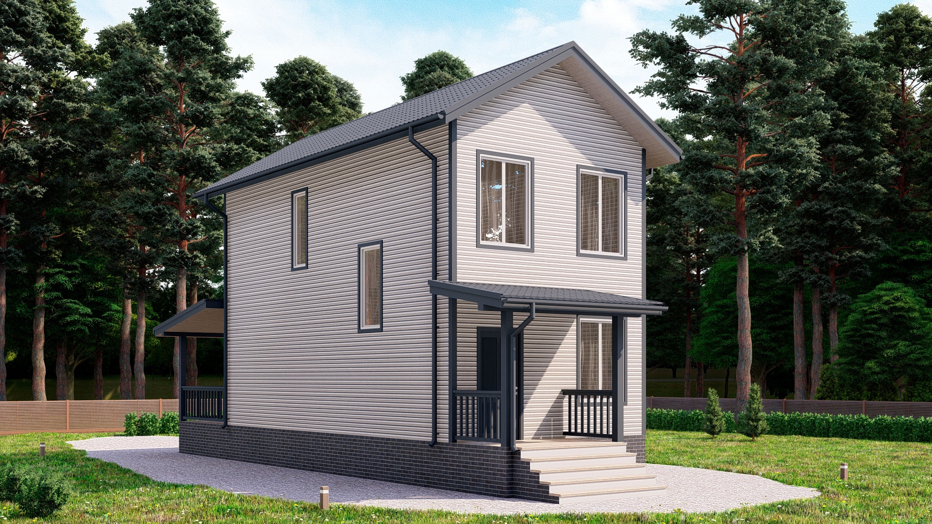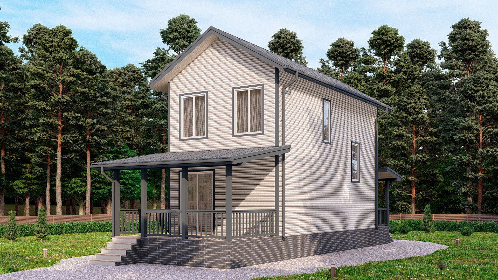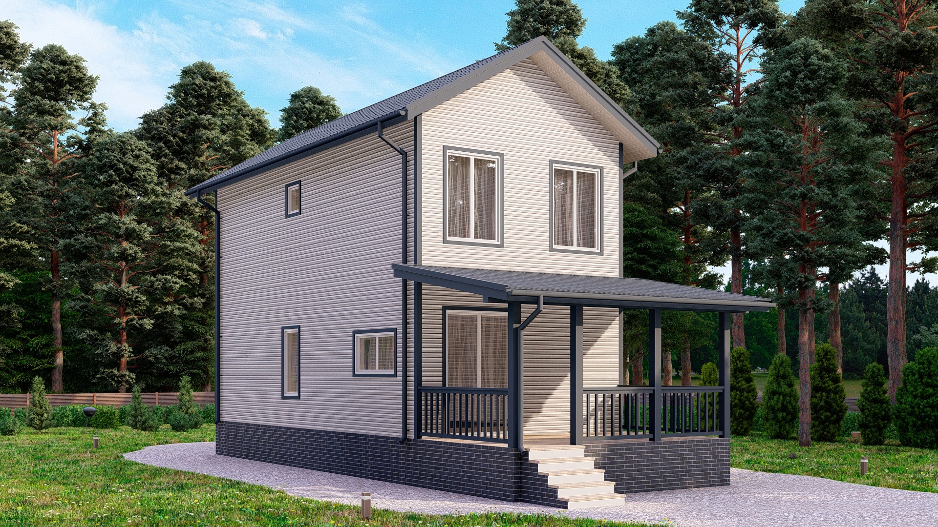 площадью 100 м², размером 5х10 м, 2 этажа, с террасой, с крыльцом